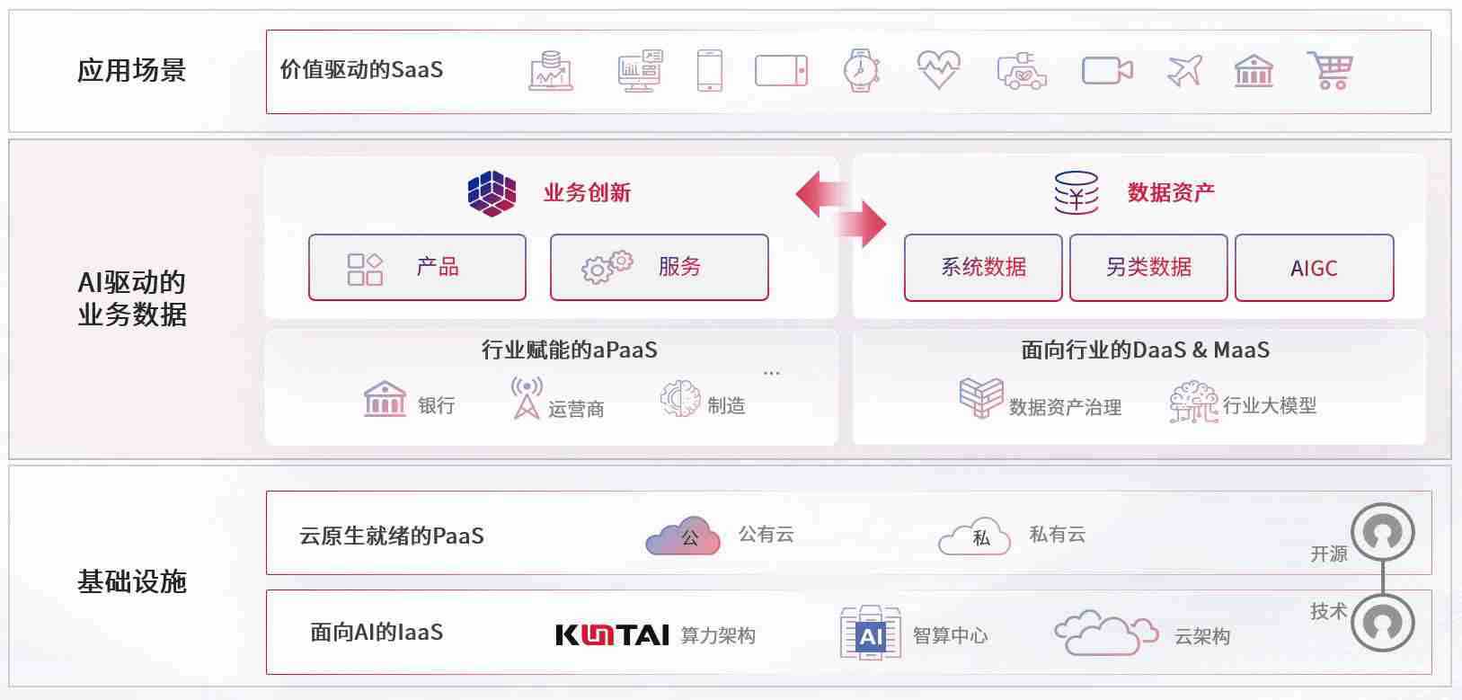 数字时代,,,围绕企业数字化转型的关键要素,,z6com尊龙数码开创性的提出数云融合战略和技术体系框架,,,,着力在云原生、、、、数字原生、、、、AI原生和信创产业上架构产品和服务能力,,为处在不同数字化转型阶段的快消零售、、汽车、、、、金融、、医疗、、政企、、教育、、运营商等行业客户提供泛在的敏捷IT能力和融合的数据驱动能力,,,构建跨界融合创新的数字业务场景和新业务模式,,助力企业级客户建立面向未来的核心能力和竞争优势,,,全面推动社会的数字化、、、、智能化转型升级。。